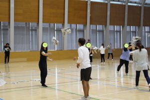 おんぶひもの適切な活用法や午睡時の配慮事項を確認するとともに、チャイルドビジョンによる子どもの視界を体験し、さらに運動あそびを通じて保育実践の理解を深めました。